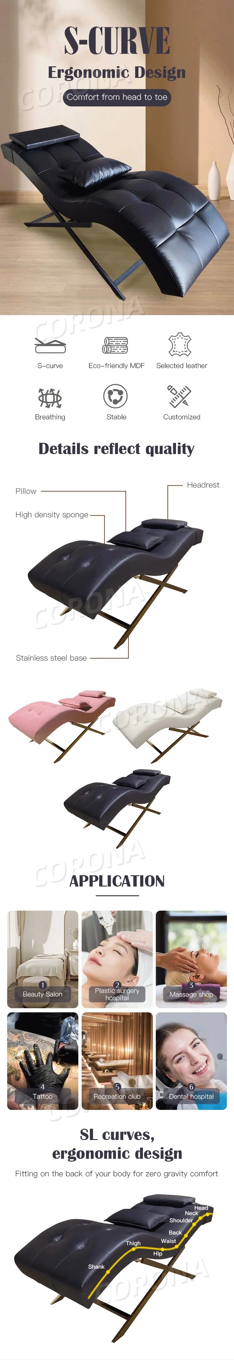 Salon Spa Lash Facial Massage Dental Curved Cosmetic Bed