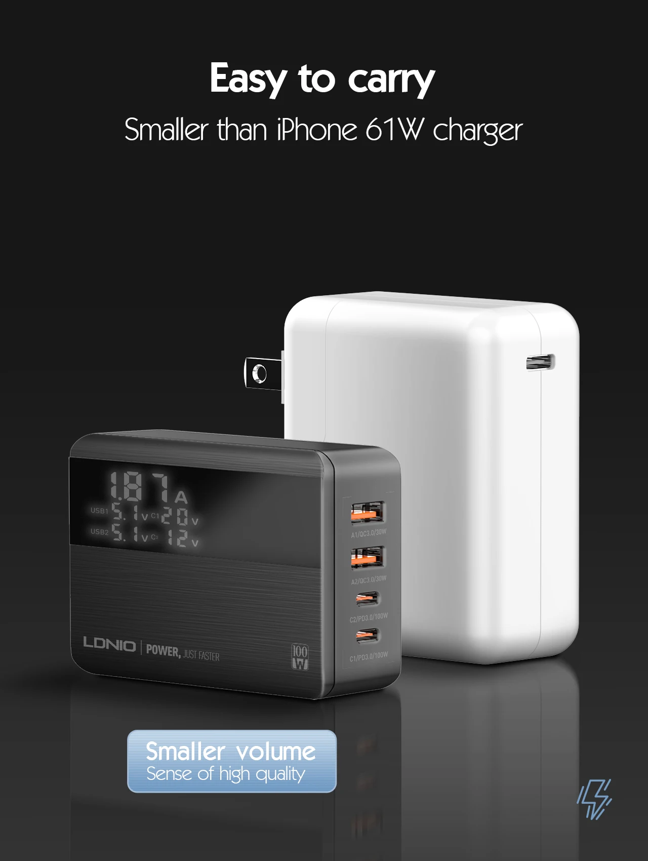 Smaller size Lighter weight Faster charging