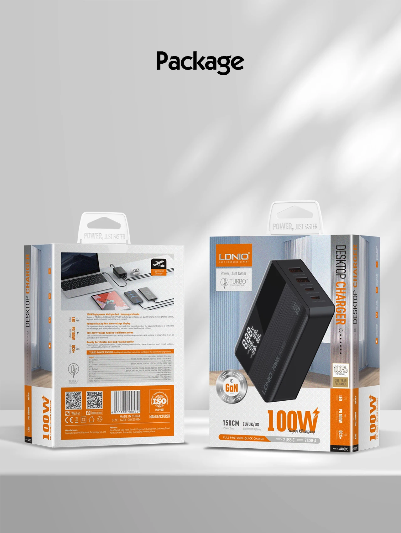LDNIO 100W GaN Desktop Fast Charging Type C PD QC For Iphone 12 15 Pro Max