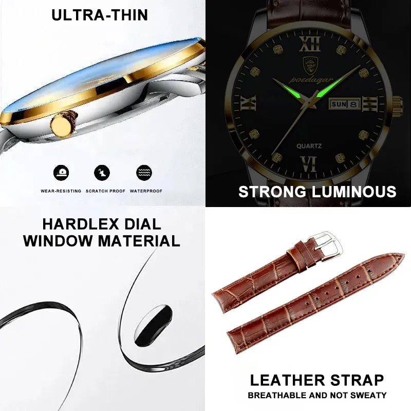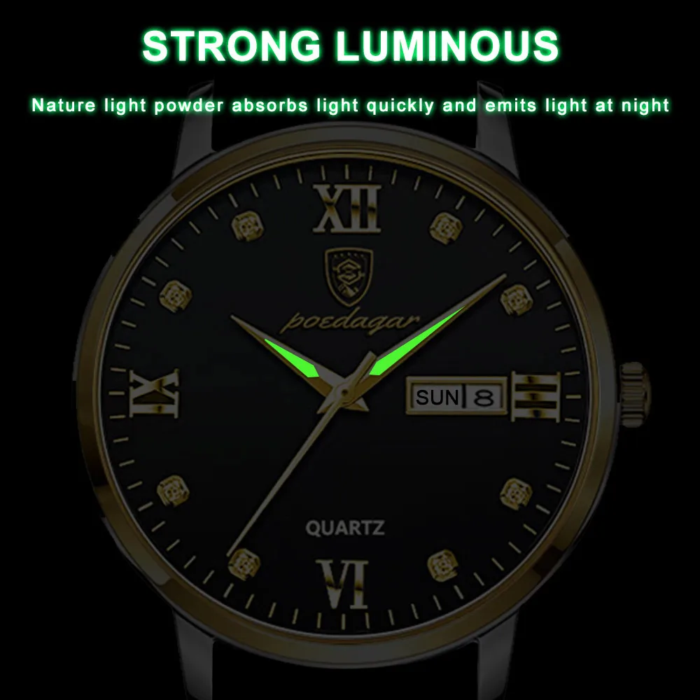 Poedagar Luxury Unisex Watches Date Week Waterproof